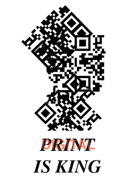 The feedback that I gathered was positive, as people recognised the shapes created by the QR code and after reading the slogan, the figure of the king became more apparent. A lot of people thought that the composition was very against digital media, however the aim of the composition was to show how print and can work alongside print media. The use of the manipulated QR code as well as the print media process was meant to show how print media and digital media can compliment each other, however the slogan 'print is king' may be too lenient towards print media, however I am not worried because the focus of my essay was print media.